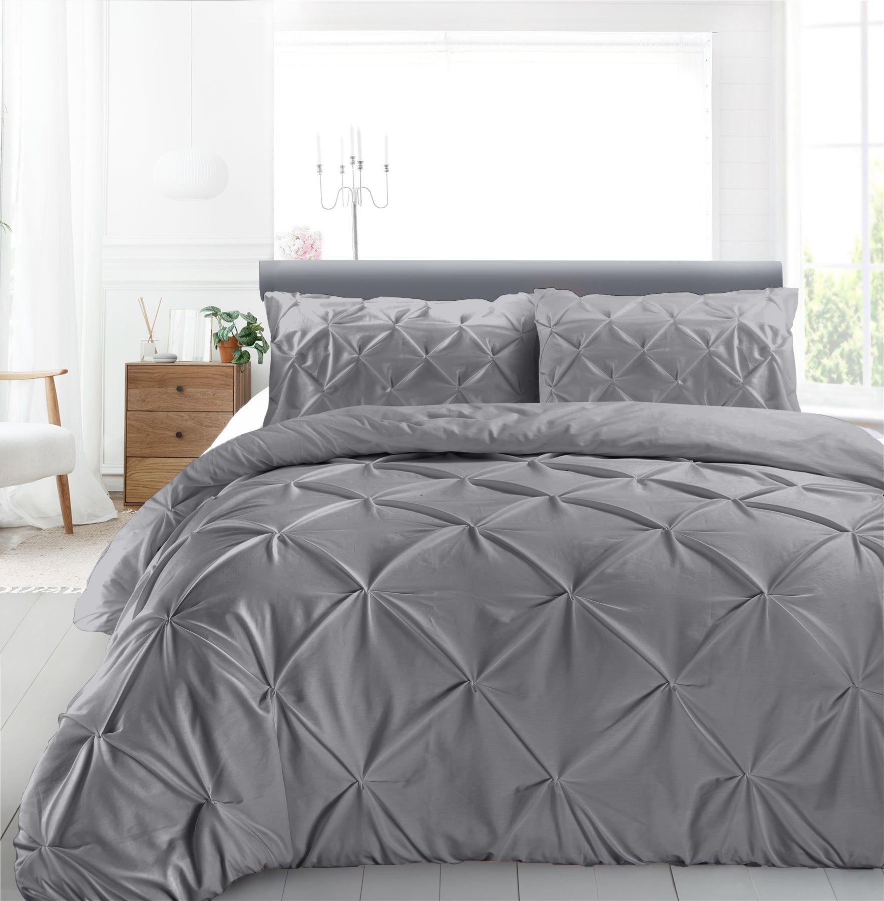 Cotton 600 Thread Count, Luxurious Pleated Design Duvet Cover With 2 Pillowcase
