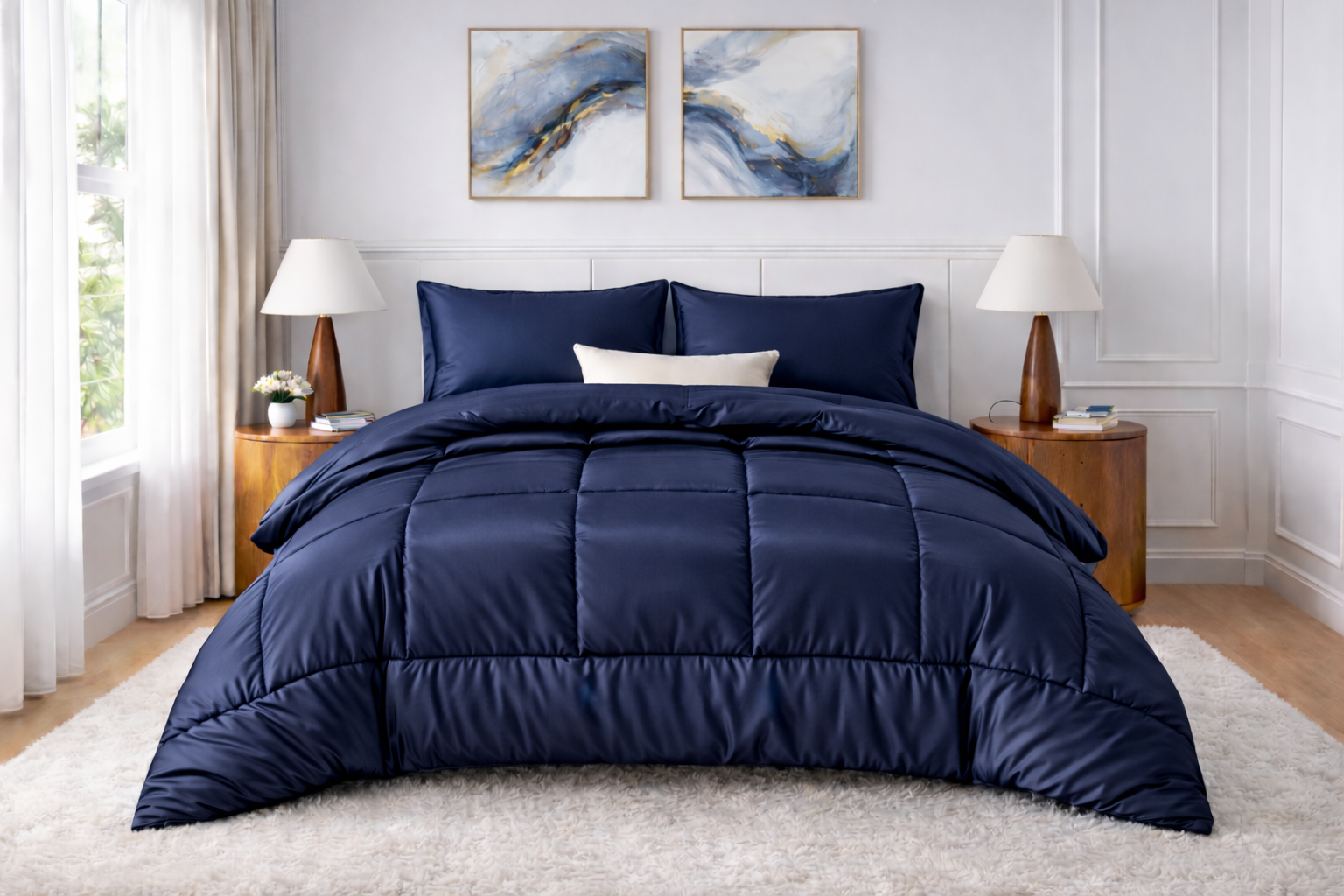 Glossy satin finish with soft texture. Comfortable for daily use and adds elegance to the bedroom.