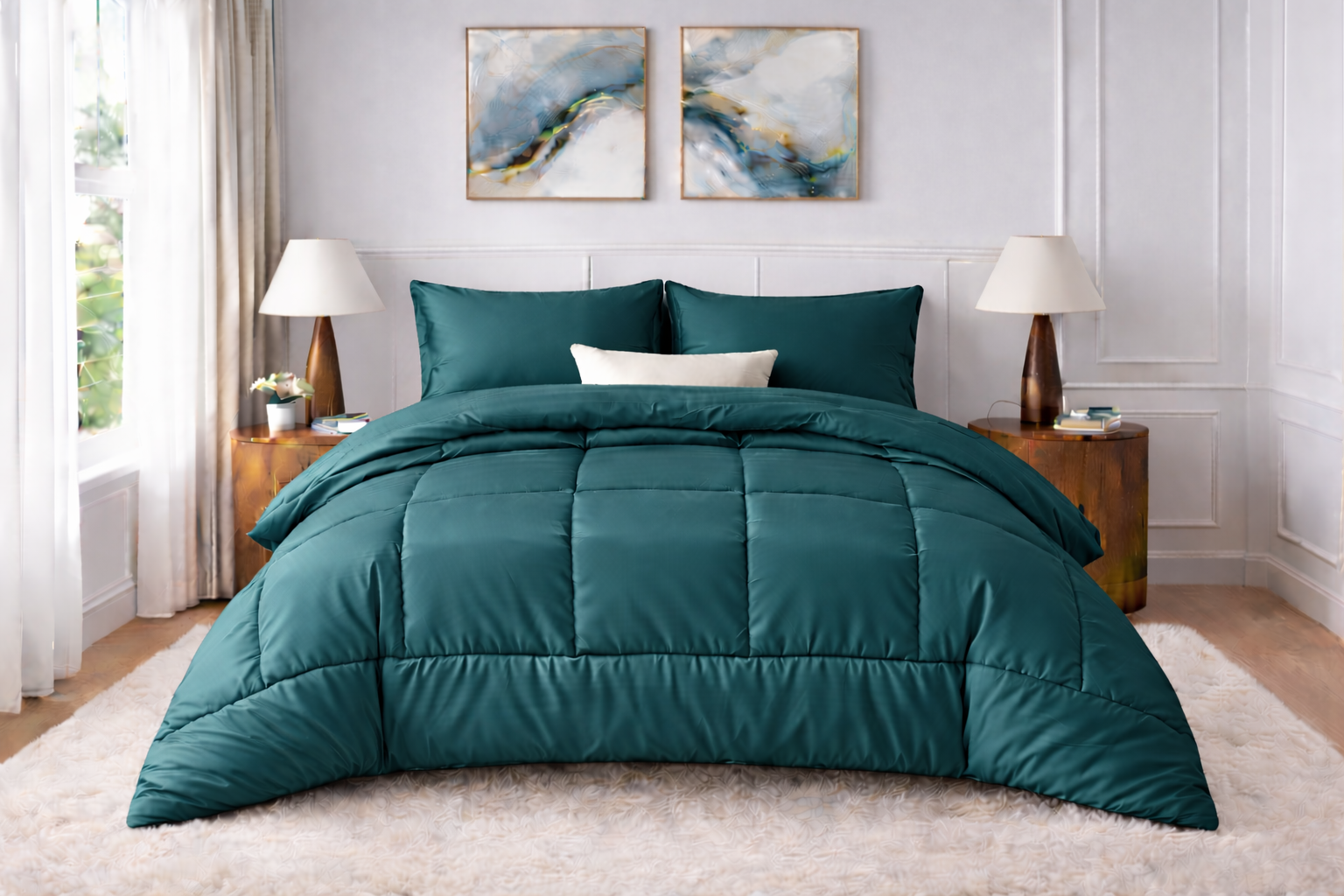 - EASY CARE: Wash this textured down alternative comforter in cold water separately on a gentle cycle and sun-dry at home. For more frequent washing, dry clean the plush comforter. Since the bag comes in vacuum-sealed packaging, it is recommended to gently tap the comforter set for increased fluffiness.